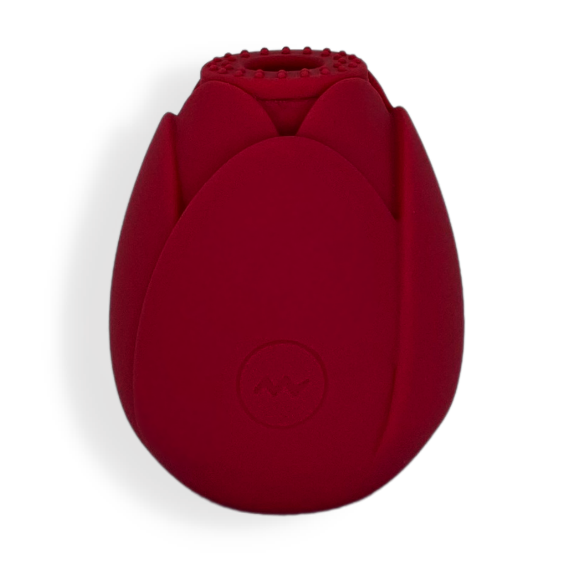 A waterproof, mid-sized air pulse vibrator shaped like a rose. Bloom uses 10 fluttering air frequencies to create a delicate suction effect for toe-curling clitoral pleasure. -